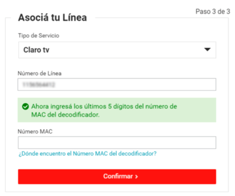 - Completá el número de línea y el número MAC del decodificador o modem.